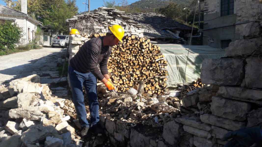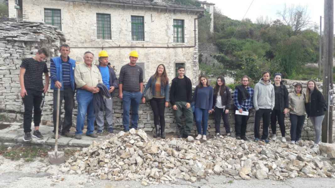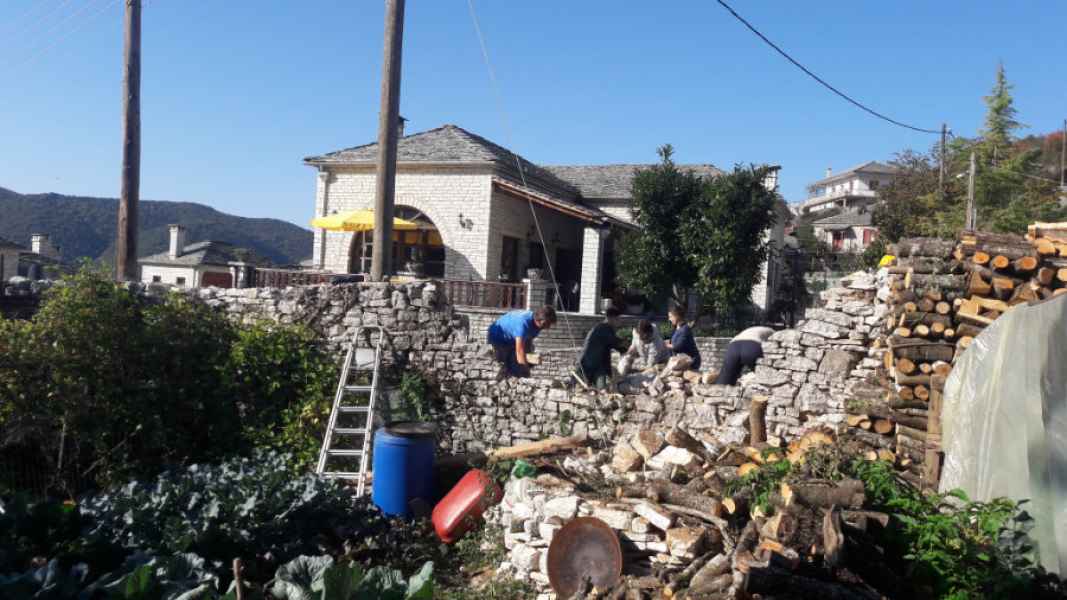 L’appel à la participation s’est fait par mailing list du reseau local (Université de Ioannina et structures locales du Zagori) Nombre de participants (apprentis) : 14 dont 9 étudiants en Architecture Nombre de participants (seniors) : 3 Observateurs : 6 Déroulement de l’action : Accueil et présentation de l’activité avec un bref rappel des objectifs du projet Travail de restauration d’un mur de clôture à l’entrée du village Ano Pedina. 3 groupes se sont constitués sous la responsabilité de 3 seniors. A la fin de la matinée le mur etait complètement restauré,les participants ont rangé et nettoyé les lieux et ont rempli les questionnaires d’évaluation. A la clôture de l’action un pot a été offert aux participants.